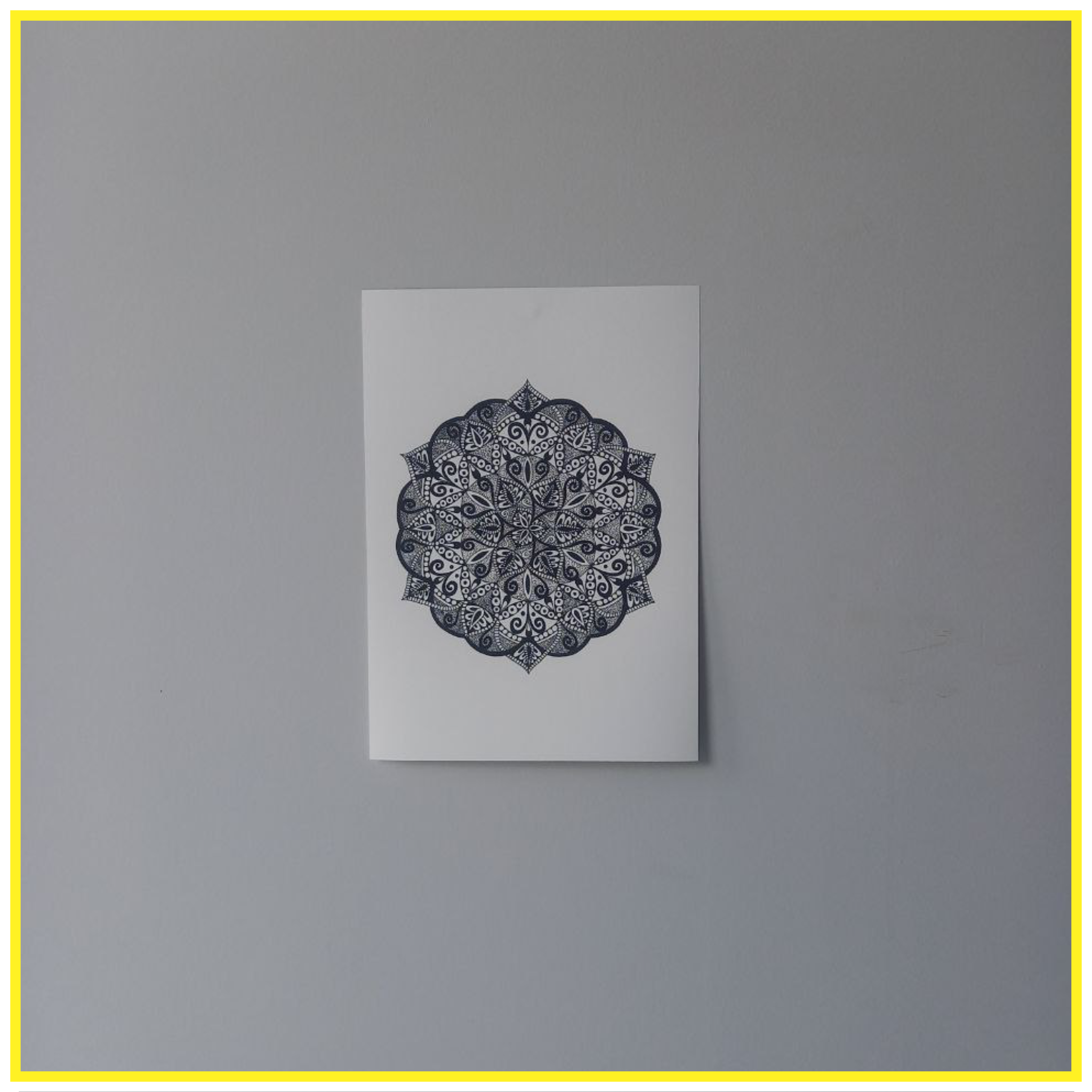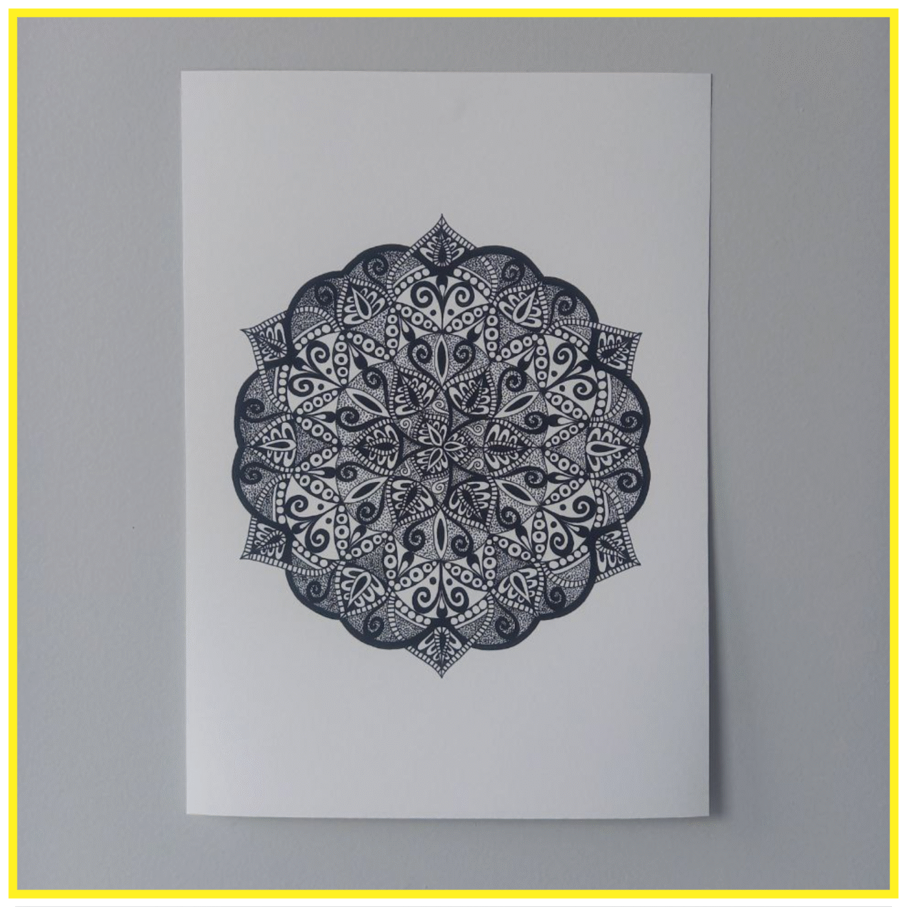 B&W Mandala print. Originally hand-drawn in black archive quality ink. Once ready, I scanned and printed it on A4 high-quality Hahnemühle Photo Matt Fibre 200 gsm paper. This print captures the fine lines and calming symmetry of the original artwork – perfect for framing, gifting, or adding a peaceful touch to your space. Created with care and a steady hand.
